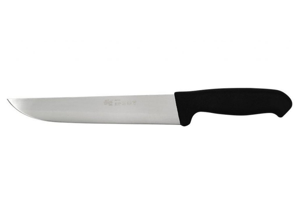 řeznický švédský kuchyňský nůž s tuhou rovnou čepelí 210mm ze švédské nerezové oceli ze série Frosts UG s černou rukojetí z polyamidu s povrchovou strukturou vzniklou mikrotryskáním pro optimální tření