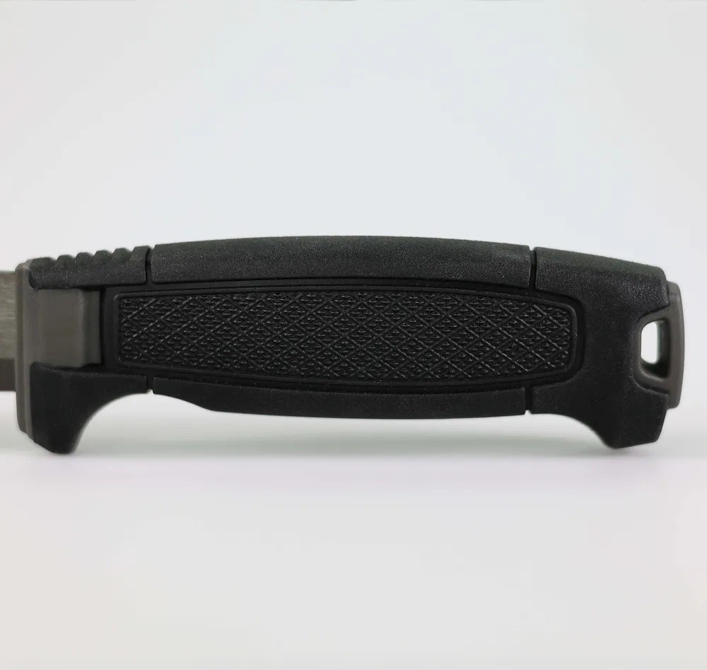 V horní části rukojeti se nalézá závěsný otvor pro uchycení nože pomocí karabiny, provázku nebo paracordu podle druhu využití.