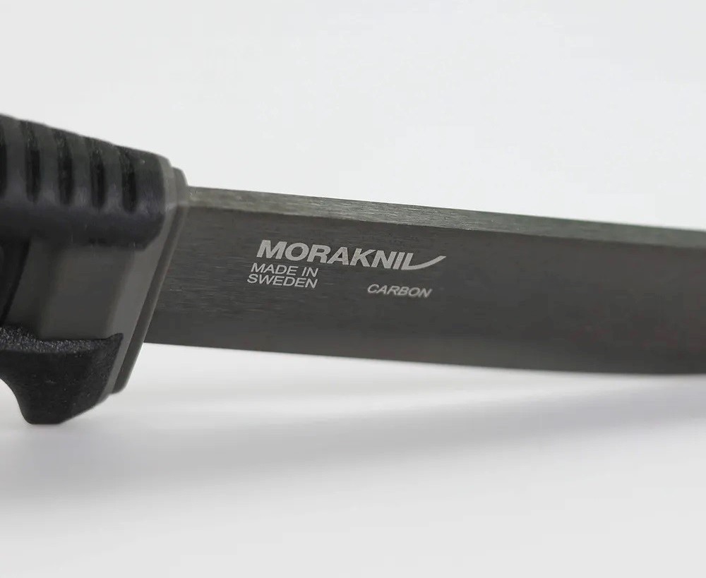 Čepel o délce 109 mm je vyrobena z německé uhlíkové oceli C100S válcované za studena a kalené na 57,5 HRC.