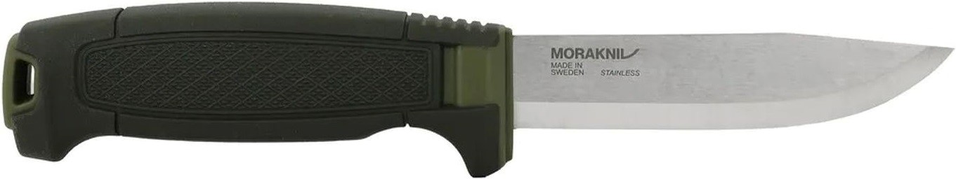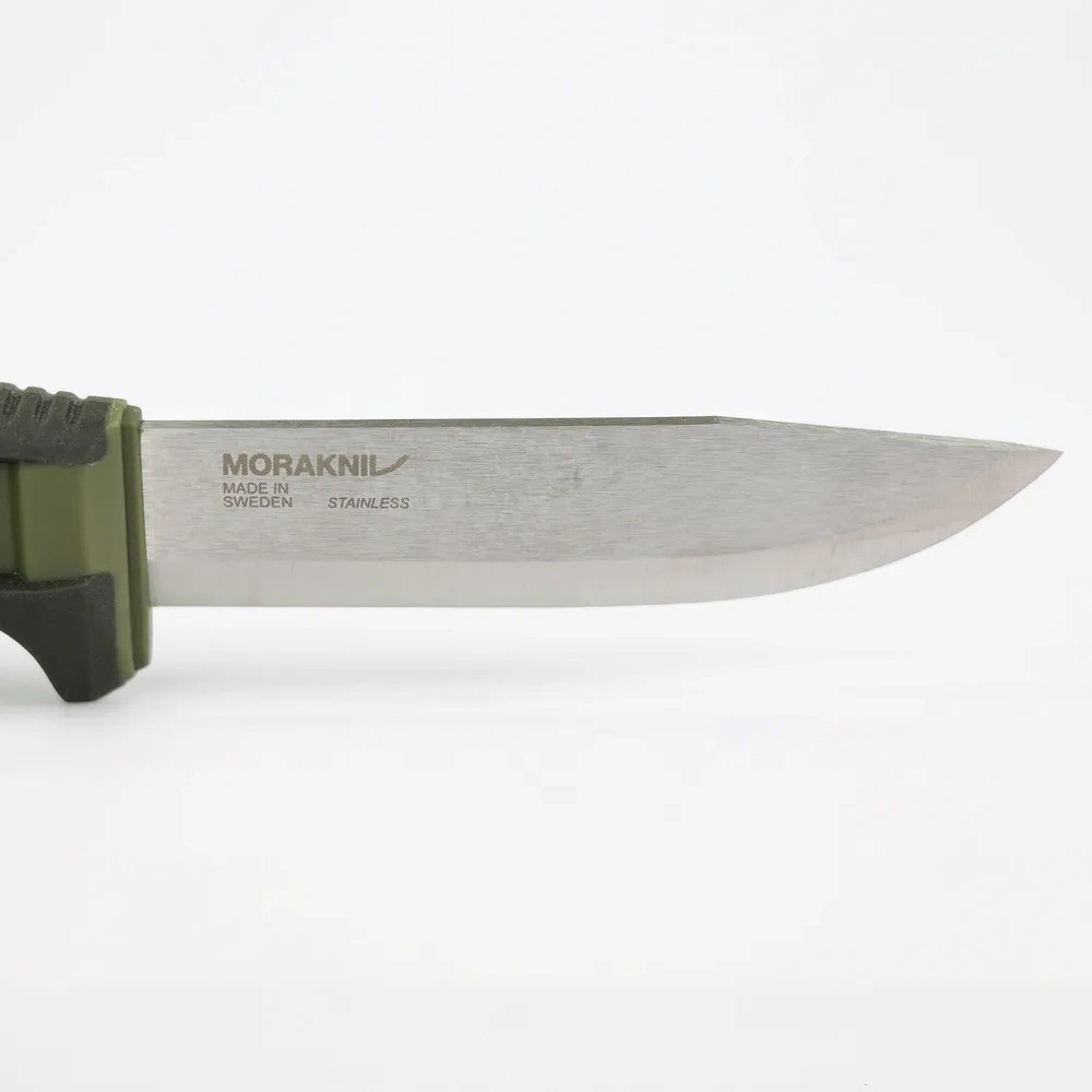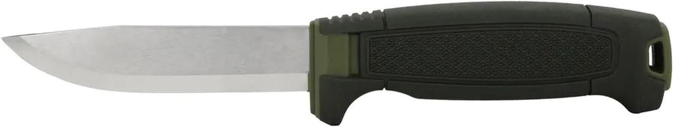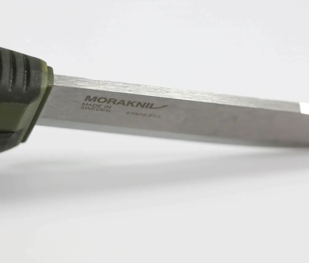 Čepel o délce 109 mm je vyrobena ze švédské nerezové oceli sandvik 12C28 válcované za studena a kalené na HRC 58 s ostřím odolnějším proti opotřebení.