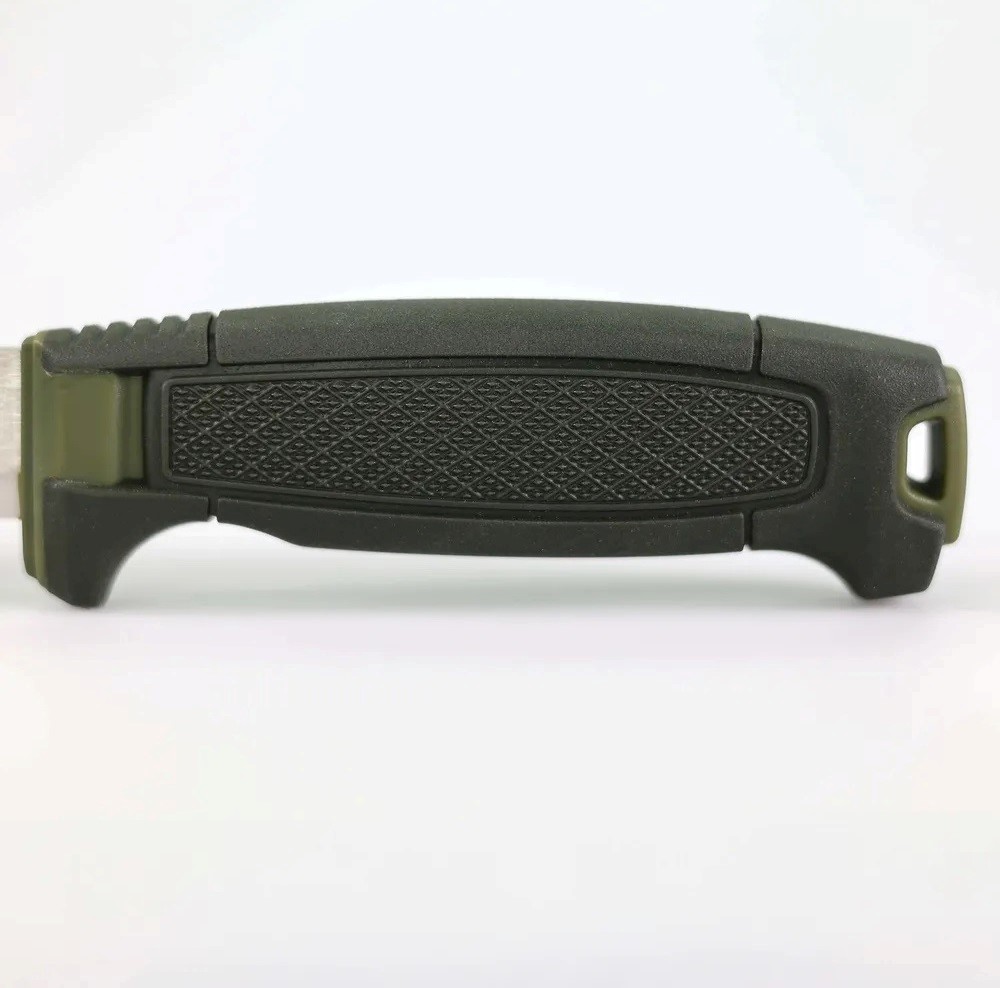 V horní části rukojeti se nalézá závěsný otvor pro uchycení nože pomocí karabiny, provázku nebo paracordu podle druhu využití.